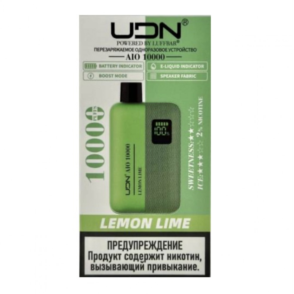 UDN видыAIO 10000 UDN вкусыЛимон Лайм UDN количество в блоке10 шт